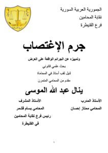 رسالة – جرم الإغتصاب وتمييزه عن الجرائم الواقعة على العرض