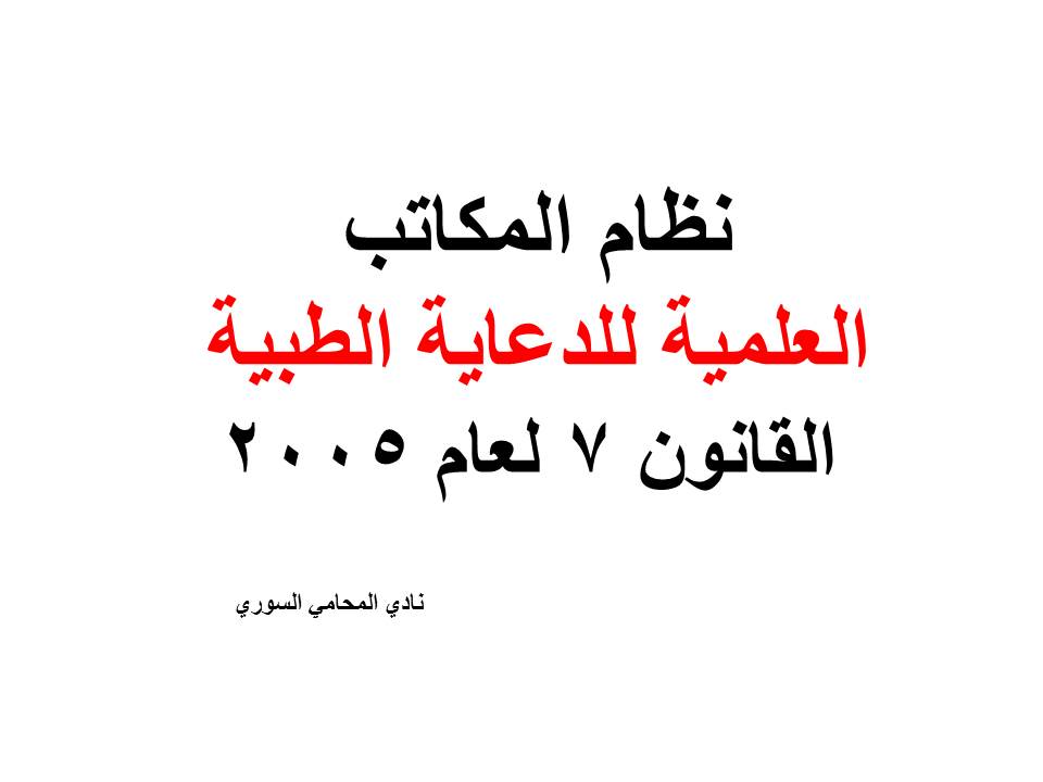 نظام المكاتب العلمية للدعاية الطبية – القانون 7 لعام 2005