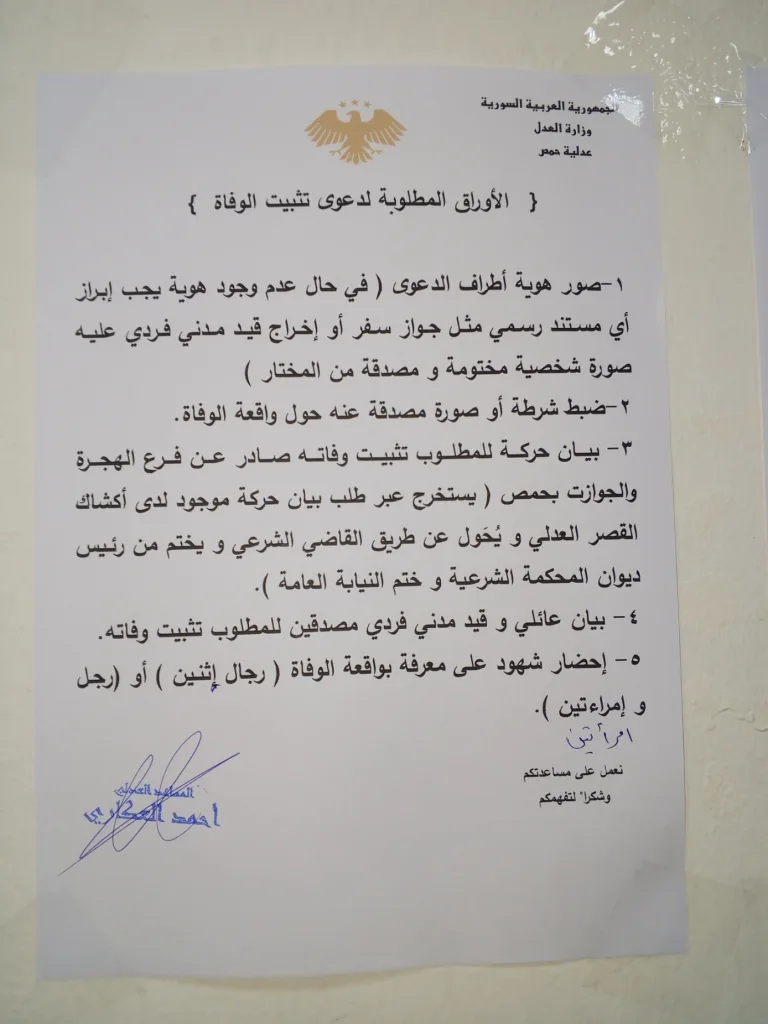 الأوراق المطلوبة لدعوى تثبيت الوفاة في سوريا