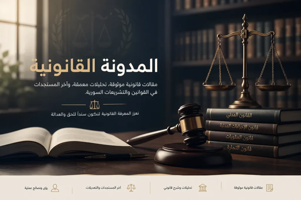 تحتوي المدونة القانونية في نادي المحامي السوري على مقالات متخصصة في مختلف المجالات القانونية مثل القضايا المدنية والعقارية والتجارية والأحوال الشخصية.